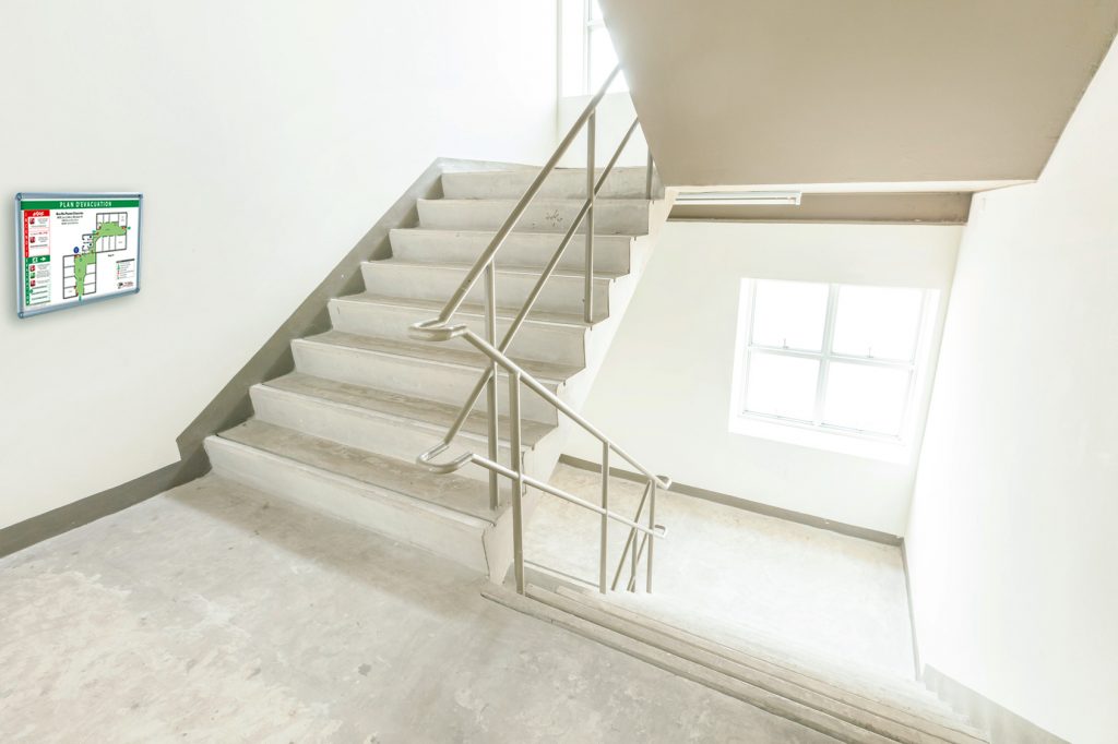Article R 4216-13 du Code du travail, les locaux de plus de 300 mètres carrés situés en rez-de-chaussée et en étage, les locaux de plus de 100 mètres carrés aveugles et ceux situés en sous-sol ainsi que tous les escaliers...